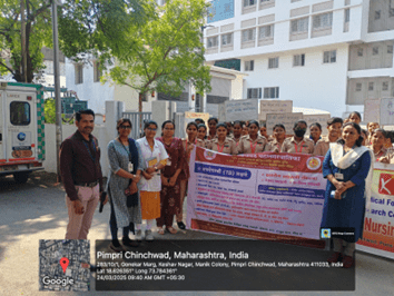 An awareness rally was conducted at 8:00 am by the First Year GNM students of Pimpri Nursing School in collaboration with Tuberculosis Unit of Government Talera Hospital, Pune-33. The rally was organized by Mr. Lahu Mundhe from the TB Department of Talera Hospital, along with the support of Pimpri Nursing School, Pune