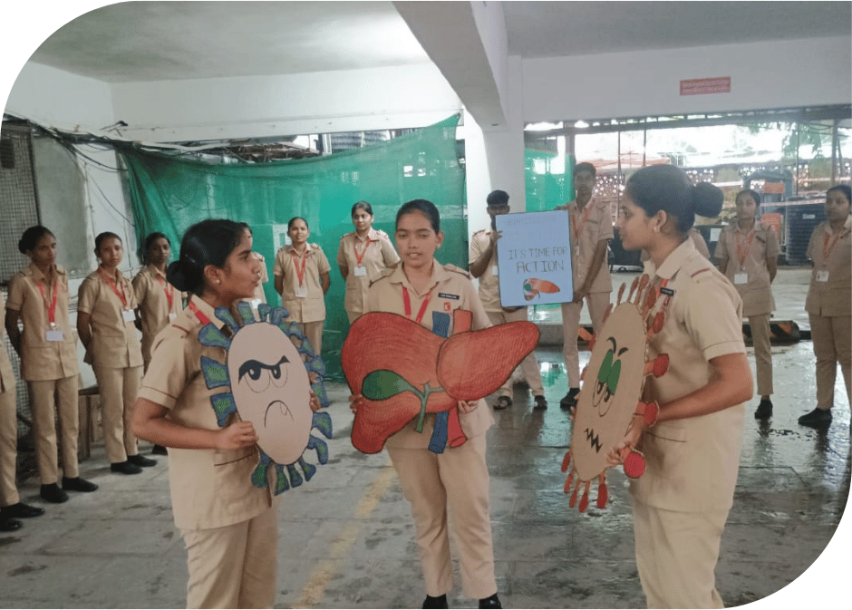 World Hepatitis Day is observed every year on July 28 to raise awareness about hepatitis, a viral infection that affects the liver. These aims focus on awareness, prevention, and education to combat hepatitis. World Hepatitis Day is celebrated by playing role play on the 29 July 2024 at Kamat Hospital premises by the student of first year General Nursing & Midwifery.